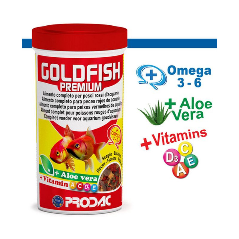 Kompletní vločkové akvarijní krmivo Prodac GoldFish 250ml pro studenovodní okrasné ryby, vhodné...