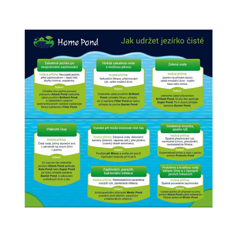 Home Pond Medic Pond 1l je širokospektrální roztok do jezírka pomáhající proti parazitům a...
