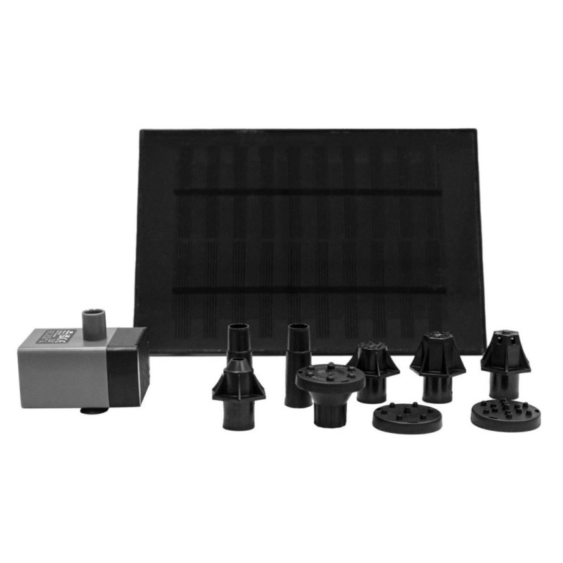 Solární čerpadlo na vodotrysk HEISSNER SP150-00 se sedmi fontánovými nástavci různých tvarů....