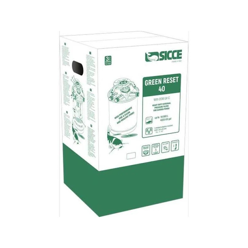 Tlakový filtr do jezírka Sicce Green Reset 25 do 8m3 včetně UV-C sterilizeru 10W. Filtr s...