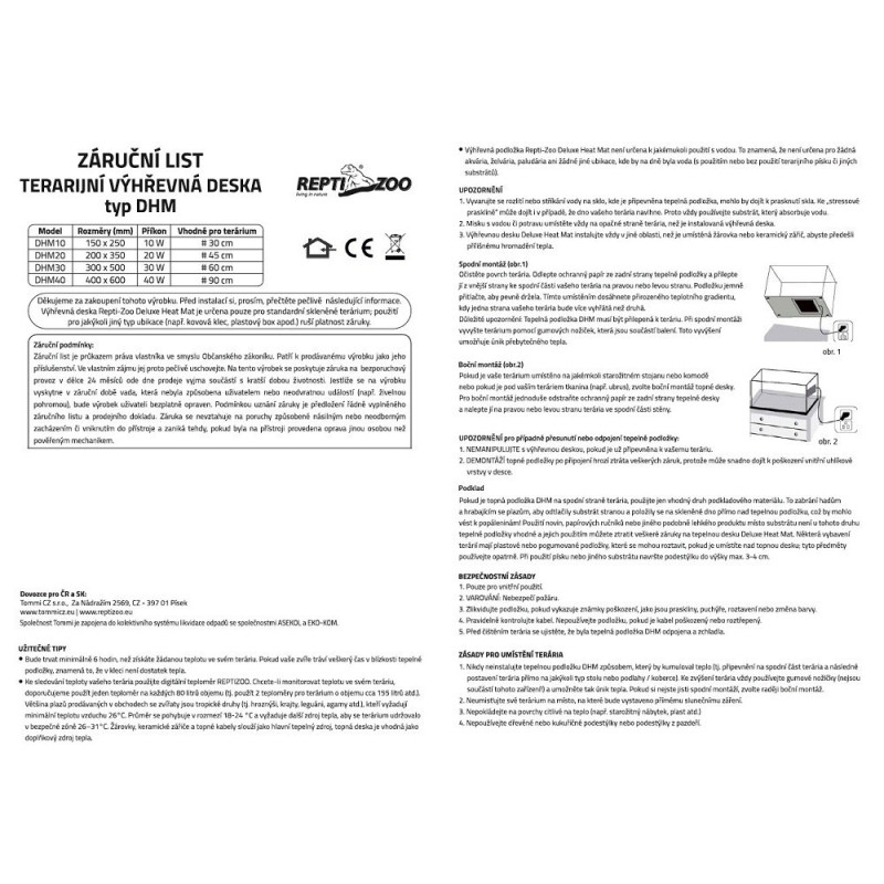 Topná deska Reptizoo DHM 10W je podložka s PVC materiálu k vyhřívání terária. Rozměry terarijní...