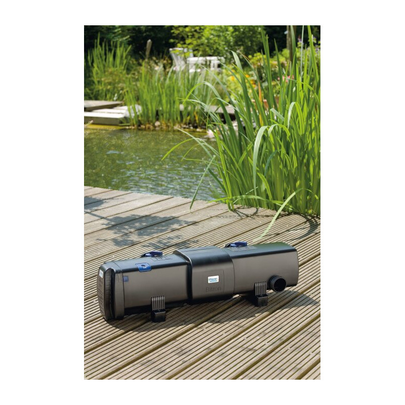 UV lampa Bitron C 72 se dvěmi 36W UV zářiči zbaví vodu hnědé i zelené plovoucí řasy. UV sterilizátor vybavený OASE patentovanou funkcí samočištění a by-passem pro obtékání dovoluje připojit vysoce výkonné čerpadlo a přesto docílit křišťálově čisté vody. UV-C lampa odstraní jednobuněčné řasy a patogenní bakterie.
