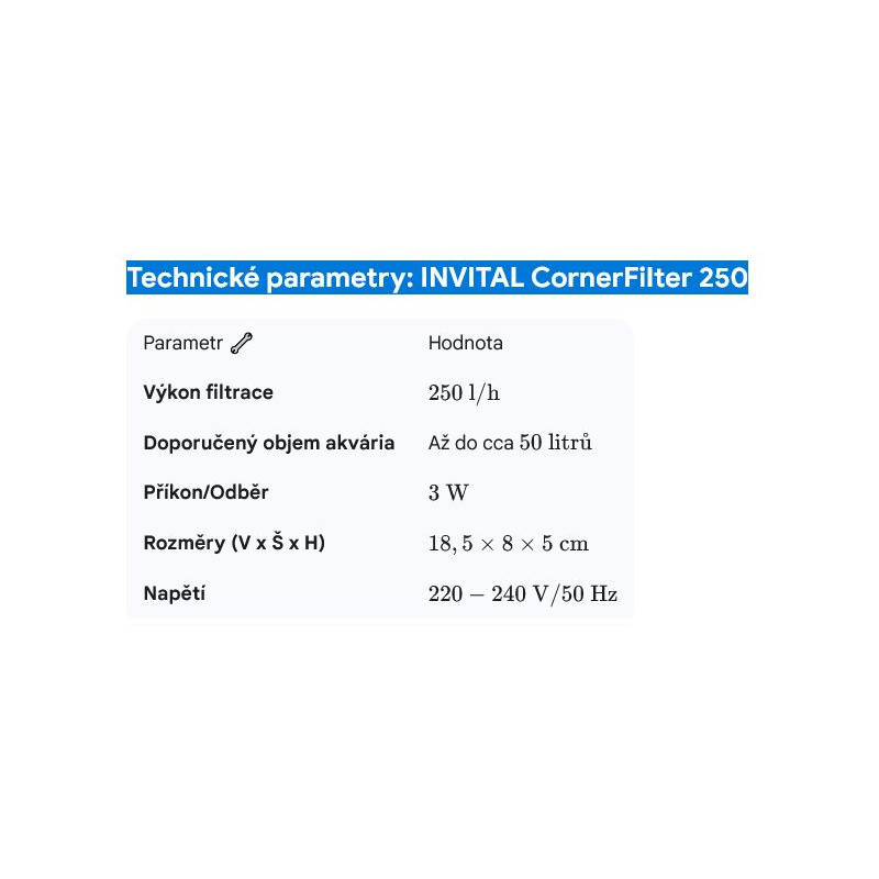 Rohový filtr INVITAL CornerFilter 450 l/h – tichý, nenápadný a výkonný filtr pro sladkovodní i...