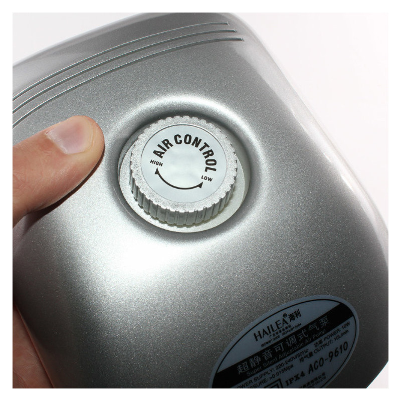 Tichý vzduchovací motorek Hailea ACO 5503 se dvěma vývody a regulací průtoku 210 l/h pro akvária...