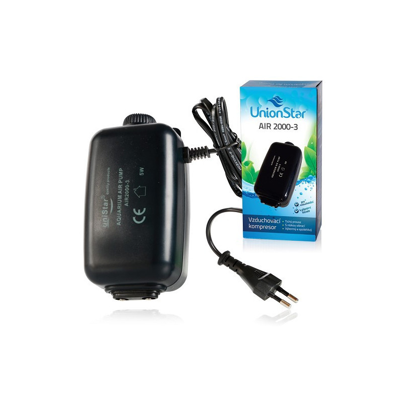 Vzduchovací kompresor UnionStar Air 2000-2, max. 108 l/h pro menší akvária o velikosti 15 - 50 l....