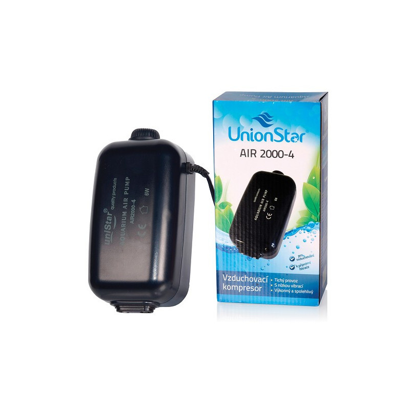 Vzduchovací kompresor UnionStar Air 2000-2, max. 108 l/h pro menší akvária o velikosti 15 - 50 l....